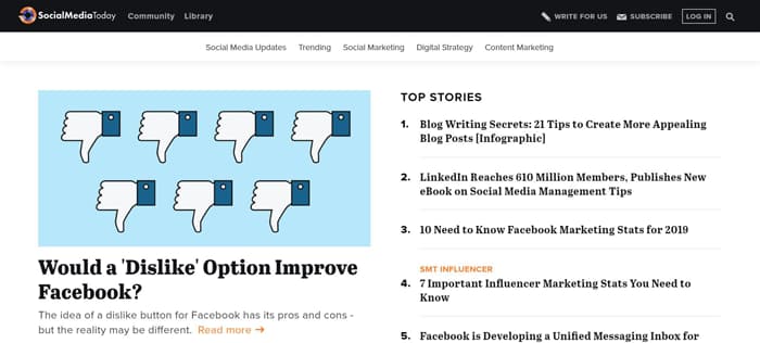 The Moz Top 10 newsletter is emailed to subscribers every two weeks. In addition to the newsletter and its prolific social sites, Moz publishes a blog (with daily updates emailed to subscribers) and its famous Whiteboard Friday videos.