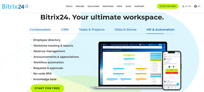 Bitrix24 is a comprehensive business platform. It accommodates team collaboration, project management, team communication, HR, CRM, and website building.